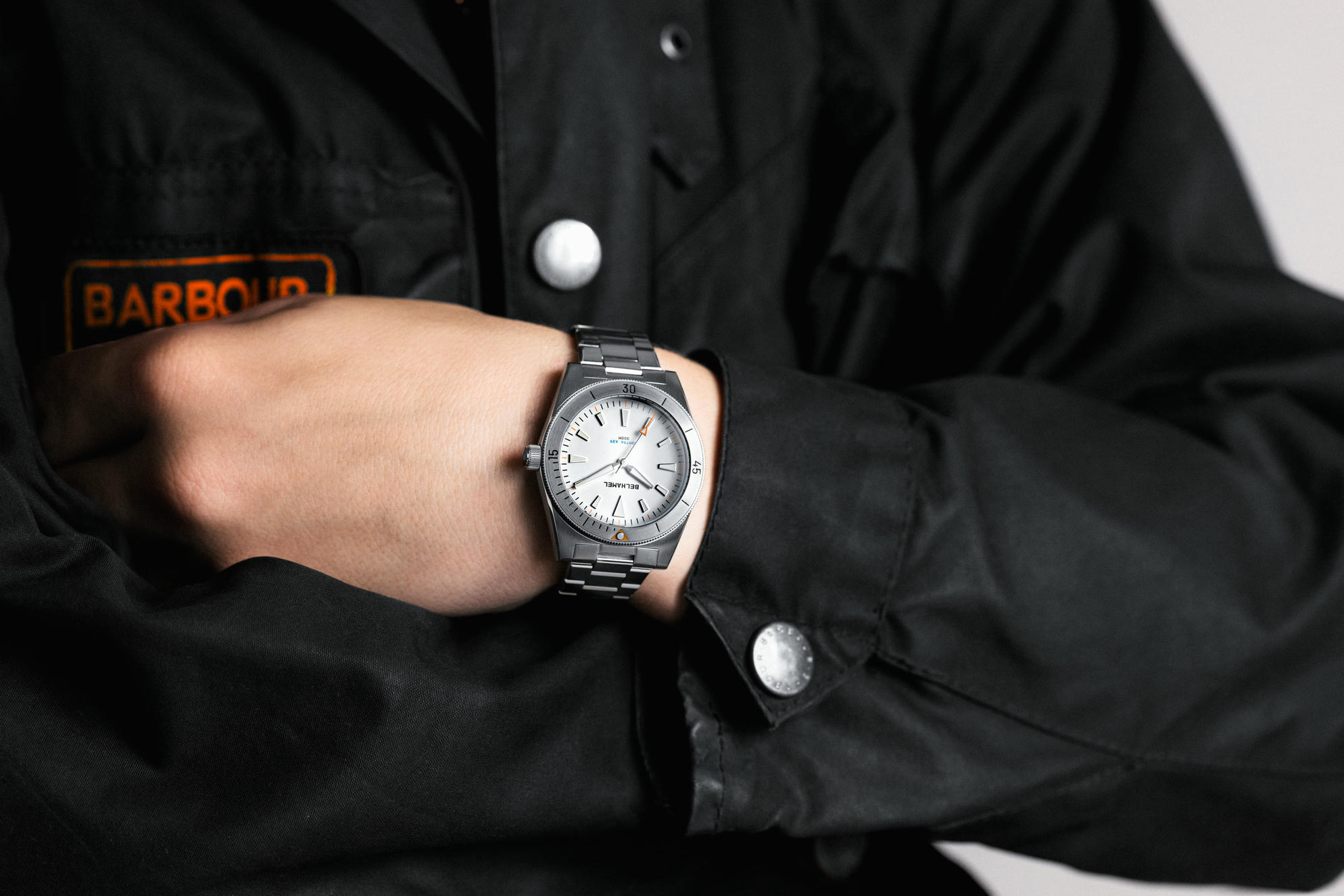 Set the time with the turn-pull-turn action of the screw-down crown. Proportionate to the watch and similarly finished, with brushed sides and a polished end featuring the Belhamel icon, it's easy to use and keeps the watch understated.