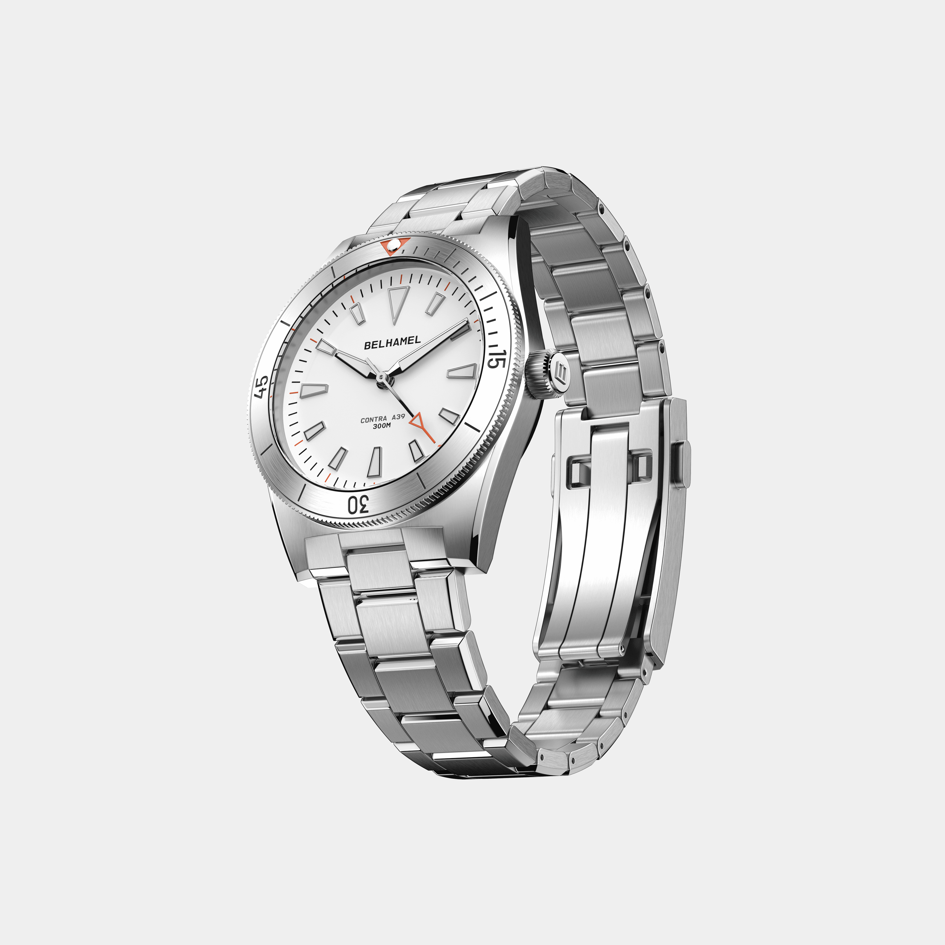 The Contra A39's clean lines, polished chamfers, finely brushed finish, precise proportions, and geometric shapes combine to create a versatile watch. It's perfect for a day full of adventure and sleek enough for an evening social gathering.